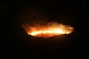 9. When the time is right alloy addition is done by throwing bags full of alloys and temperature is recorded. The metal is tapped at 1610-1620 ᵒC. we always prefer low tapping temperature because low temperature causes low entrapped oxygen in liquid metal which would make the product brittle.